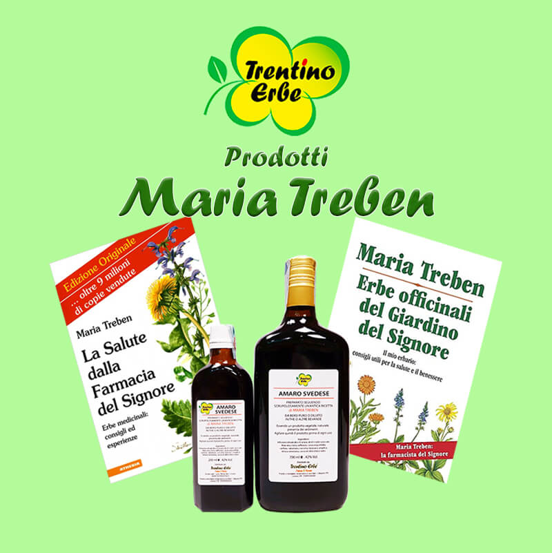 La sua passione era ispirata anche dagli insegnamenti di Maria Treben, celebre scrittrice austriaca, esperta di erboristeria. Per questo, nel nostro shop, offriamo anche i suoi preziosi libri: La Salute dalla Farmacia del Signore e Erbe officinali del Giardino del Signore, oltre a l’Amaro Svedese formulato nel suo libro, autentico toccasana per diversi piccoli disturbi.